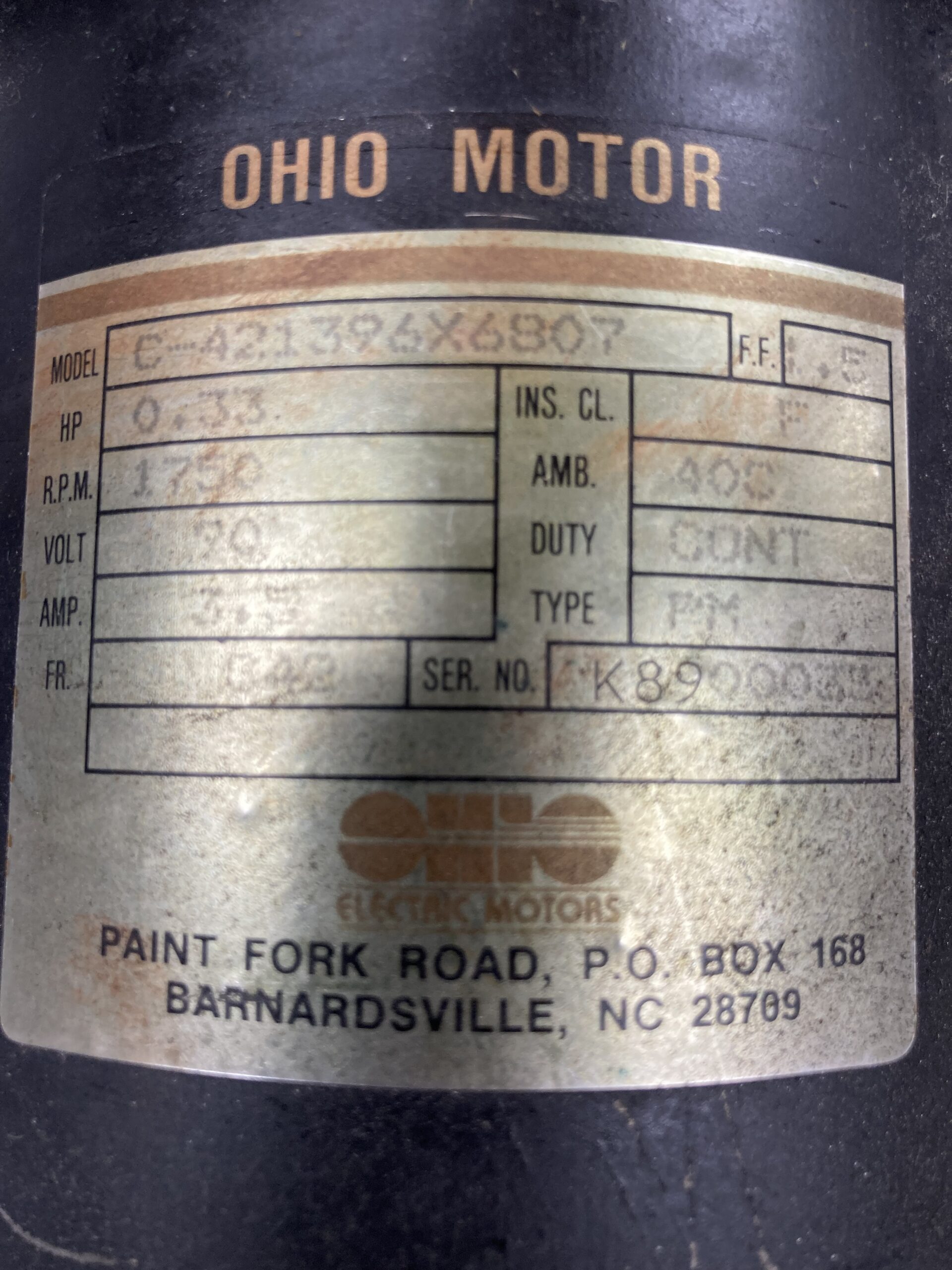 OHIO 90V Pump Motor (R&R)